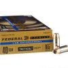 Some of the best handgun ammunition you can buy for personal defense for your .40 Smith & Wesson firearms. This is the ultra-premium Federal Premium Law enforcement HST ammunition line that goes under the “Tactical” moniker. The 180 grain HST projectile is a deep cavity hollow point with a jacket and the uniform expansion of the best engineering that Federal has. The uniformity in expansion is one of the obvious benefits of the round. Combined with the clean, easy-feeding nickel plated brass casings which are easily reloadable, thanks to a Boxer primer, this is a significant round that can not only offer fantastic performance in the most important of situations, but which can be practiced with and still offer some added value with the premium casing, even if it is a bit pricey to play around with the stuff.