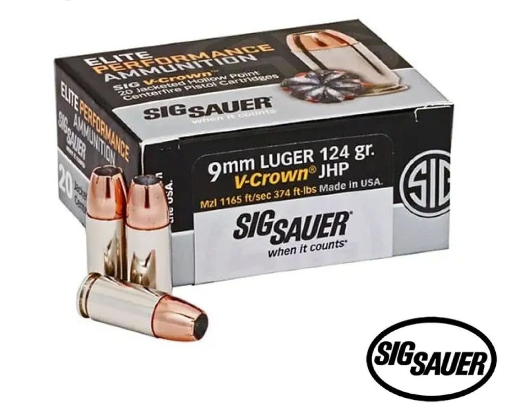 Sig Sauer Elite V-Crown 9mm 124gr. JHP (20rds & 200rds)